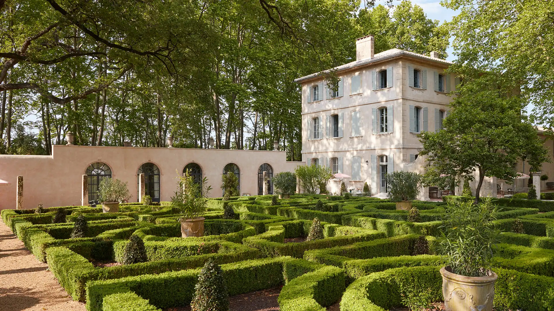 One of the estate’s greatest treasures is its extraordinary gardens—among the most beautiful in the Alpilles—where boxwood parterres, cypress esplanades, sculpted olive trees, and winding streams create a constantly changing landscape.