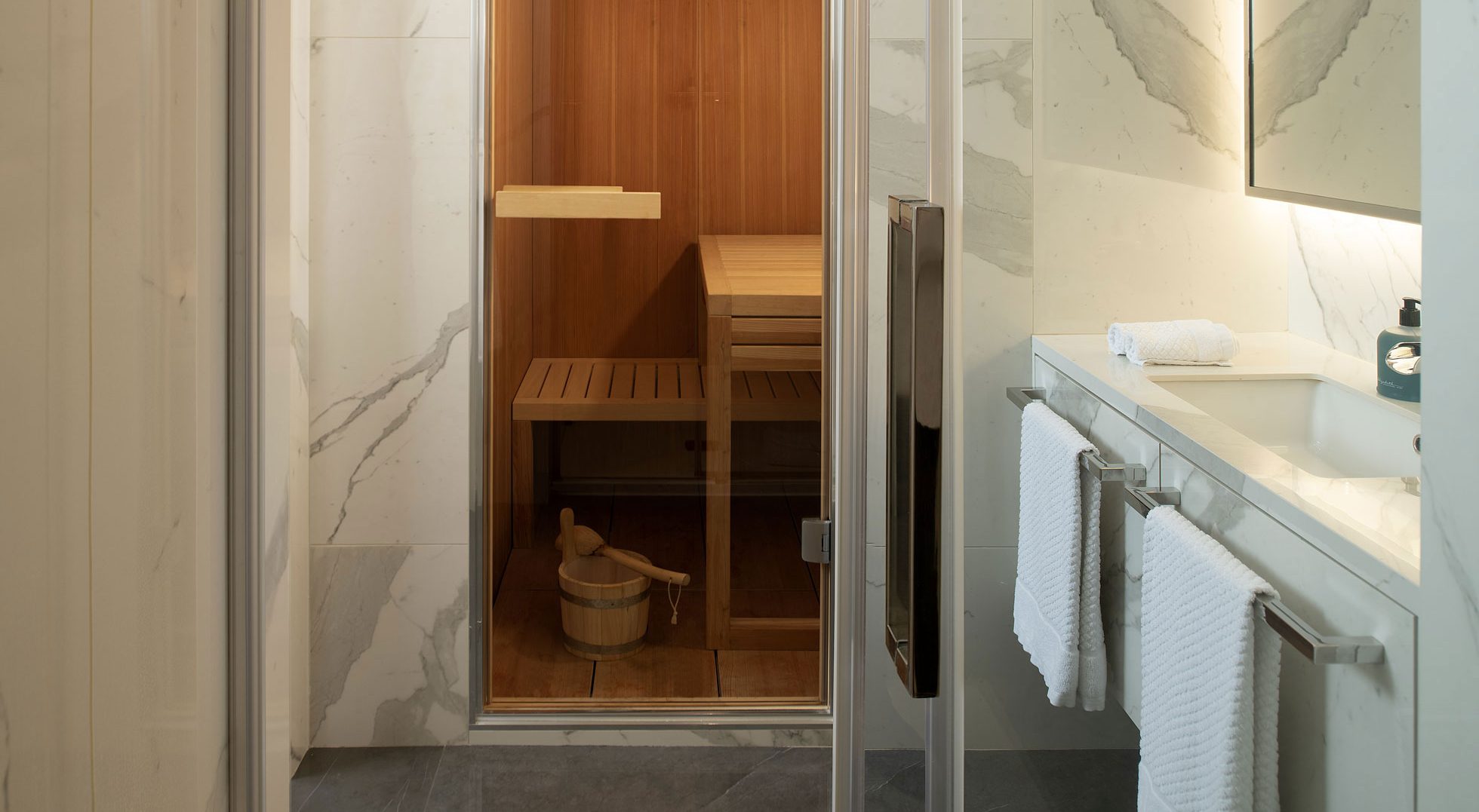 Rather than a dedicated spa floor, Elizabeth Unique Hotel takes a more intimate approach, with select suites coming with their own private spa, including a hammam, a Jacuzzi for two, and a cascade shower. Other suites include a private sauna. In-room massage and treatment services are available on request.