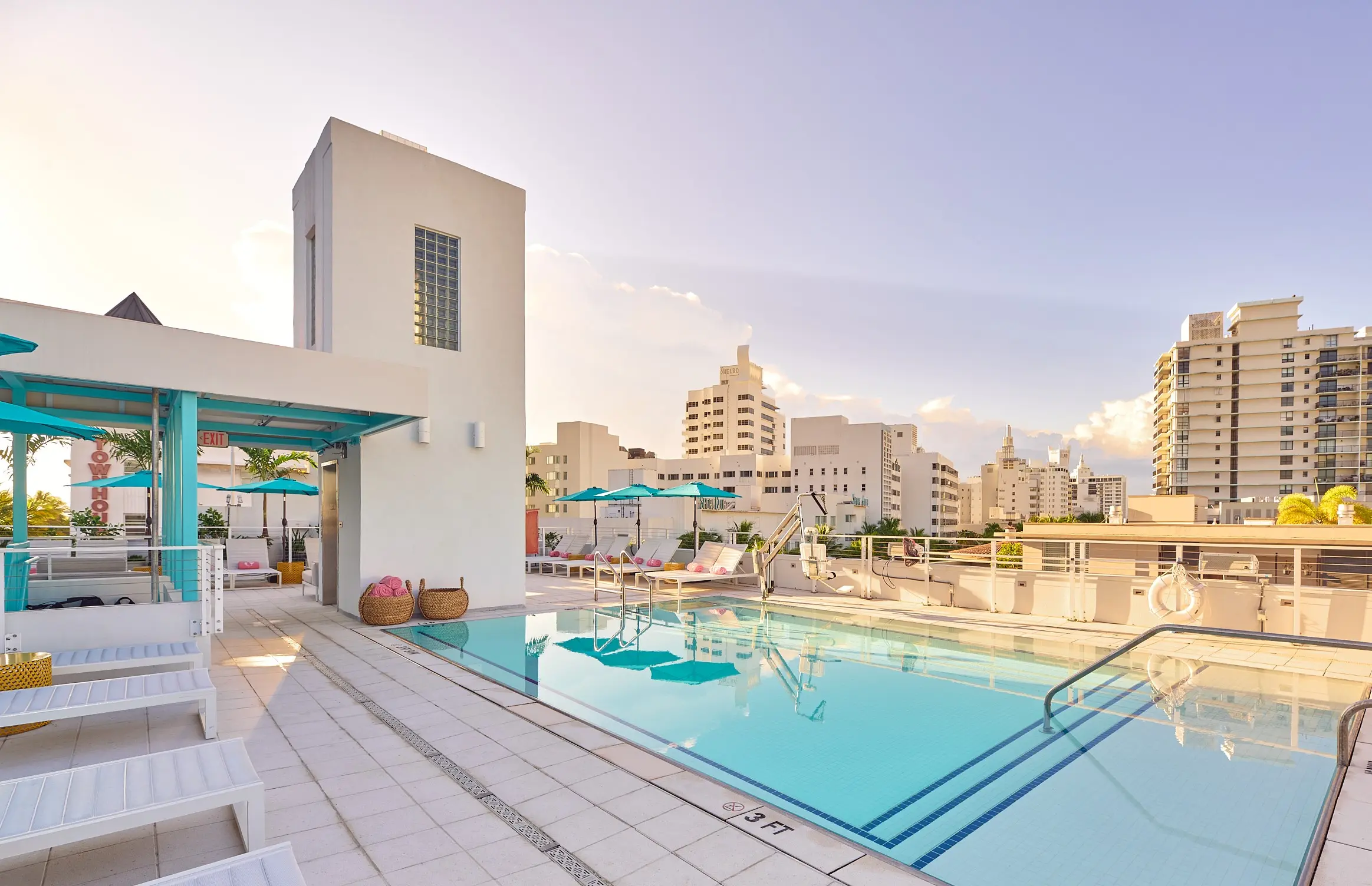 Sip cocktails between swims above Collins Avenue as the sun goes down; the open-air rooftop pool and bar are reason enough to book.