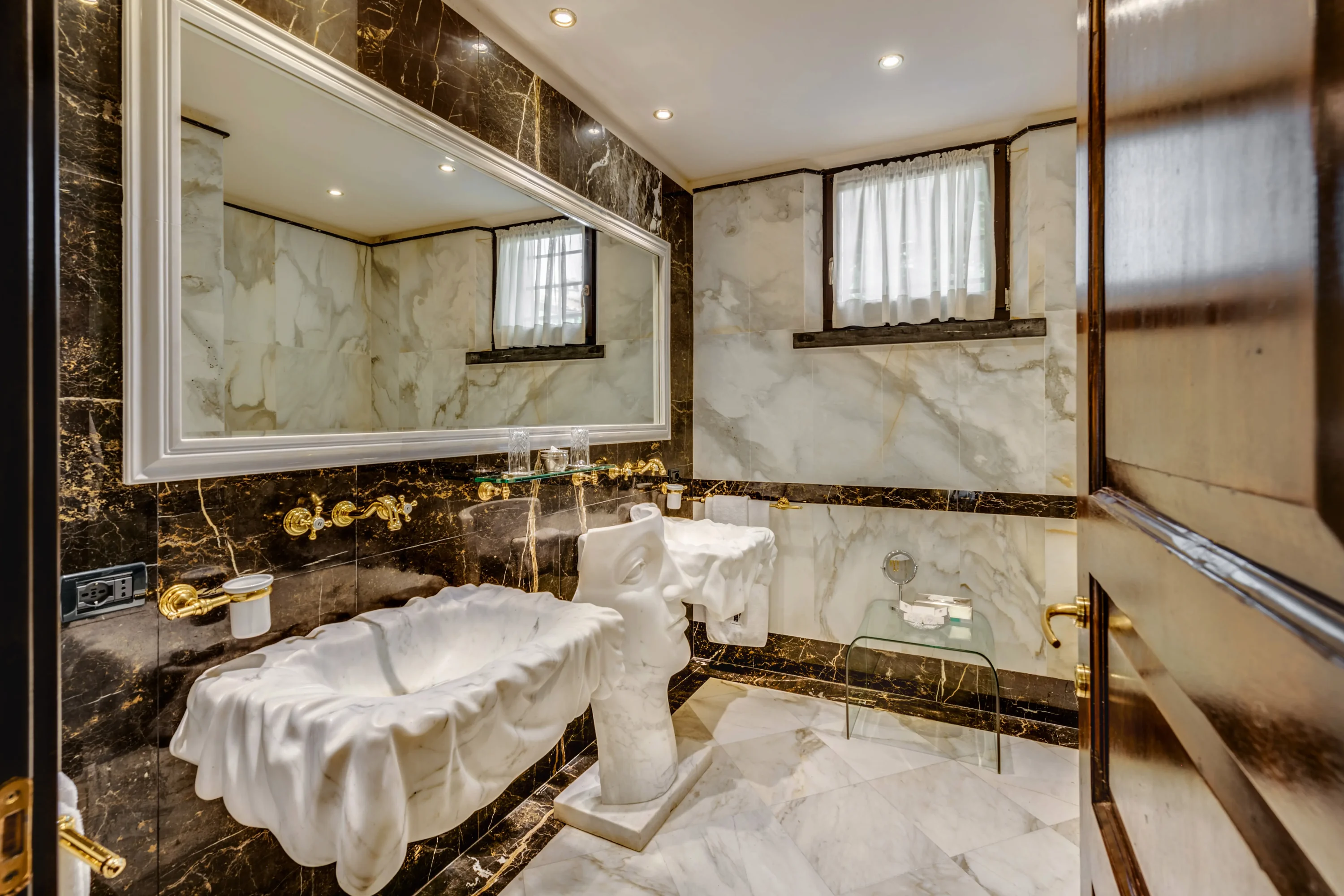 Discover eight rooms designed with care and a great passion for art, where original paintings and works by contemporary artists blend well with traditional furnishings and design pieces. Fine carpets enrich artisanal terracotta floors, and the bathrooms shine with the brightest marble. Original, well-orchestrated details where every element—from exposed beams to rare stone bas-reliefs—invites rest and quiet.