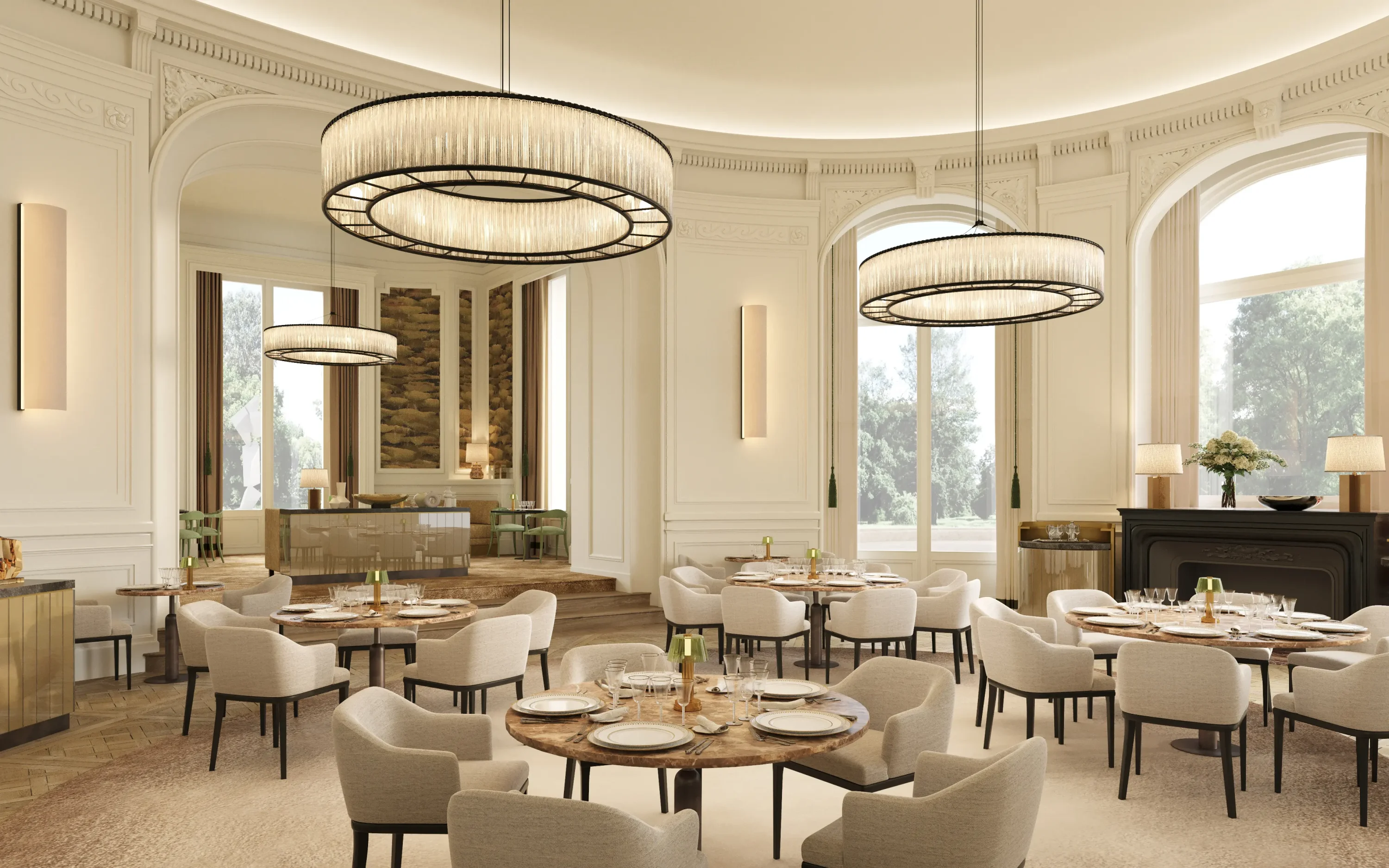 The château's former music salon is now the setting for L'Opéra, where Chef Léo Chinot and his team bring together attentive service and carefully selected local ingredients beneath majestic chandeliers and ceiling-high windows. On Sundays the restaurant hosts a generous brunch buffet, with a forest terrace available in fine weather.