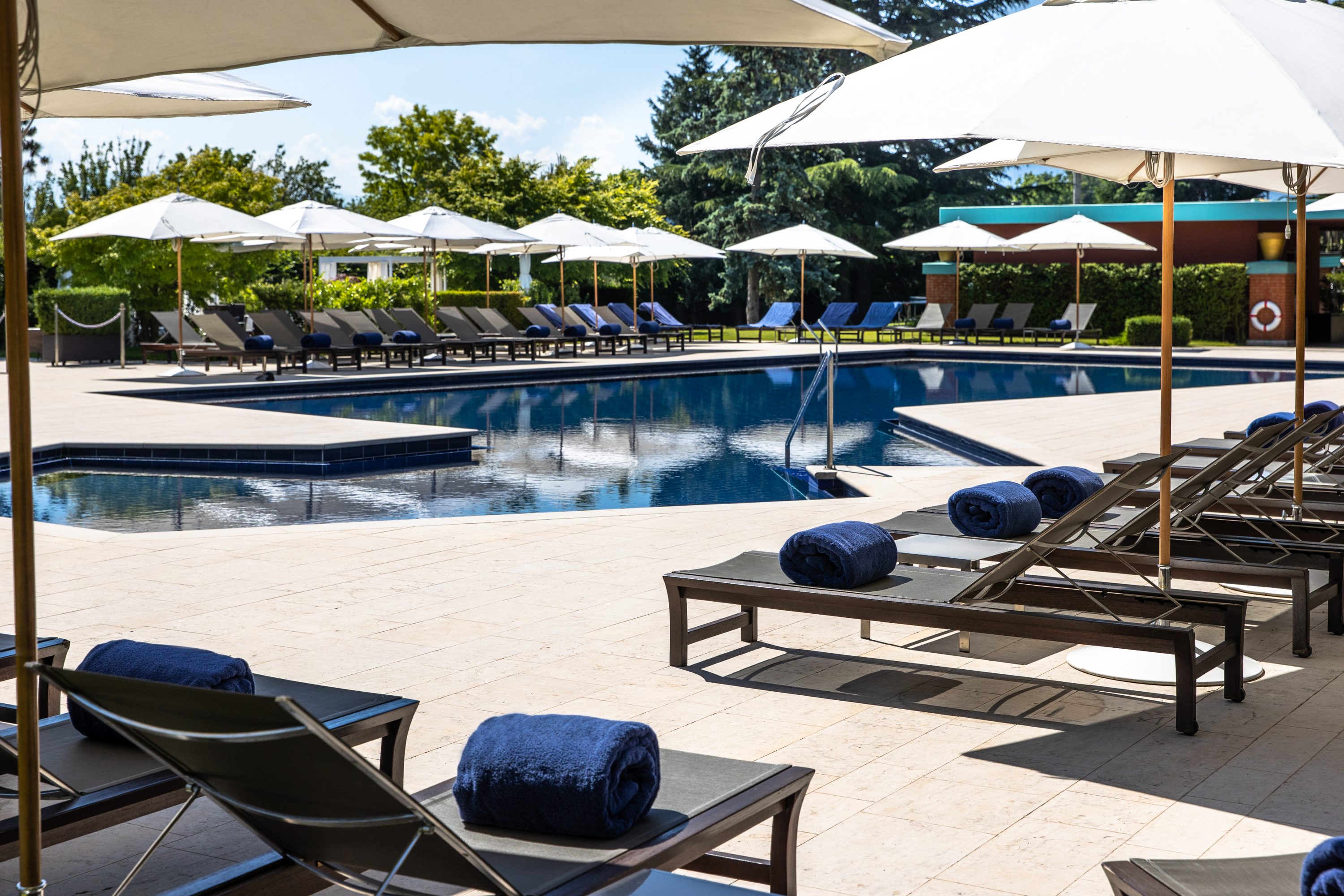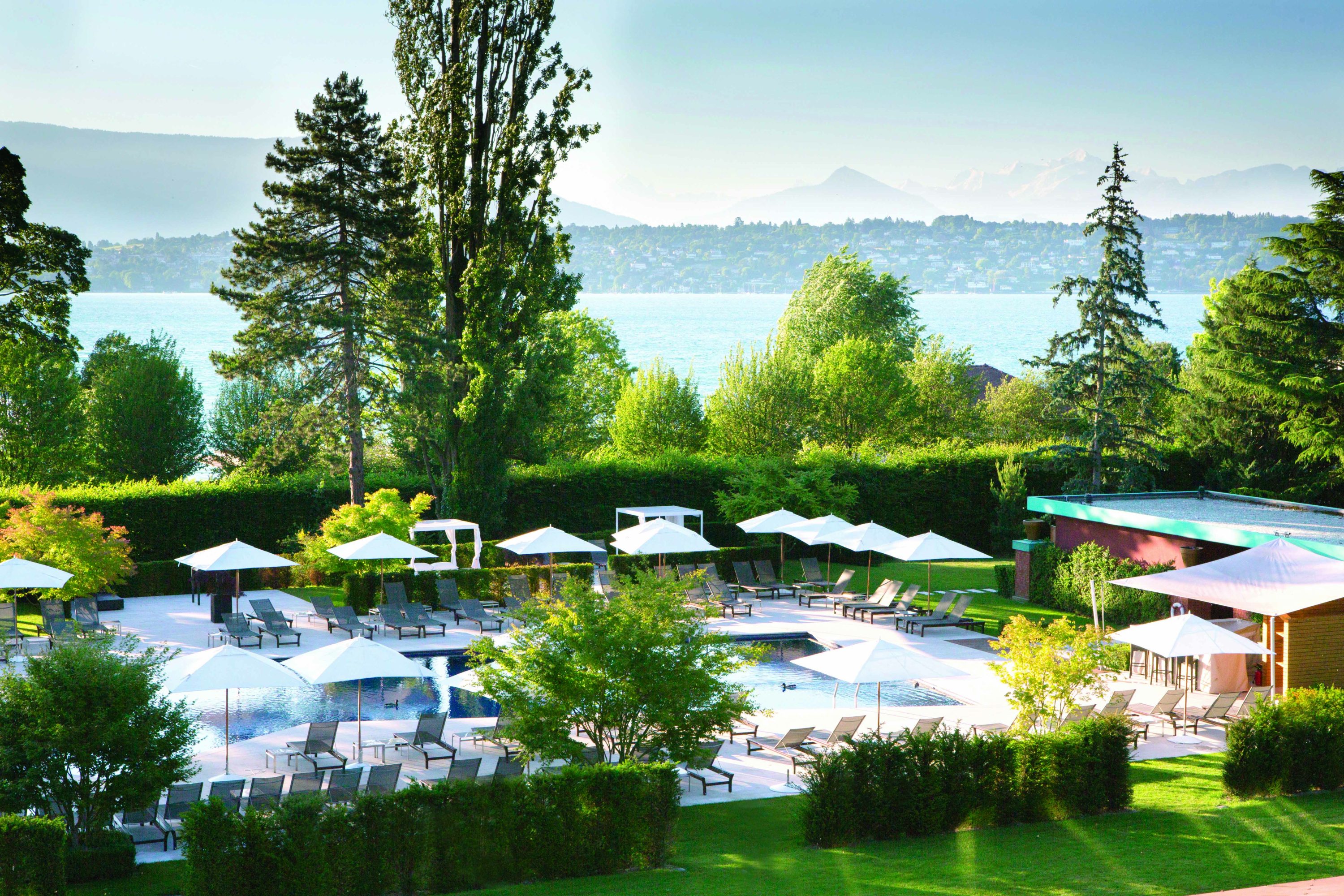The outdoor pool at La Réserve Genève is a lovely spot surrounded by gardens, offering gorgeous mountain views. Kick back on sun loungers, take a refreshing swim, or grab a cocktail and light snacks from the pool bar. It's open from May to mid-September, daily from nine in the morning until seven at night, and it’s kid-friendly.
