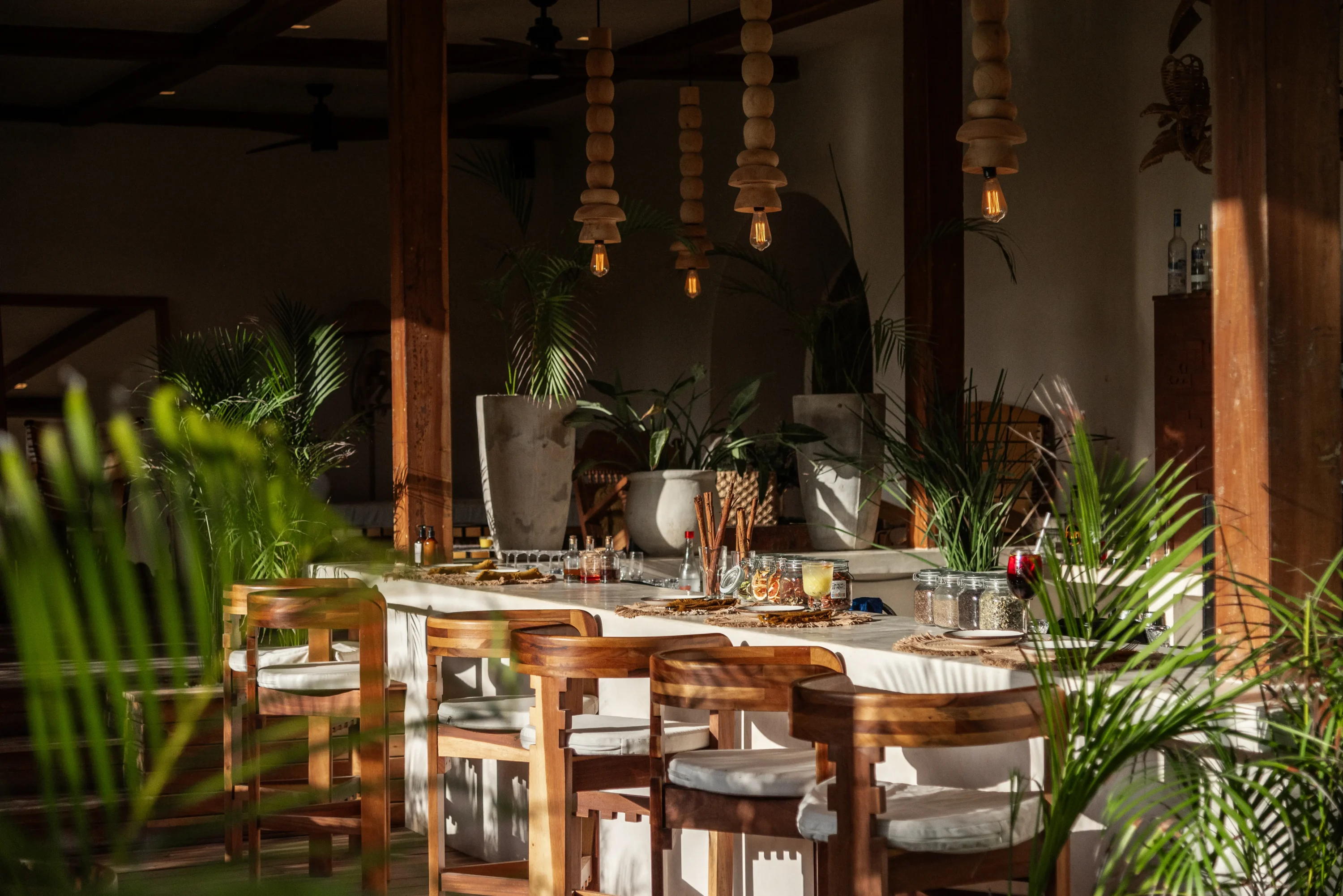 La Valise Tulum's bar keeps things laid-back but well-crafted, with expertly made cocktails, tropical drinks, and a curated selection of spirits served against a backdrop of either the turquoise Caribbean or lush jungle, depending on which side of the property you're on.