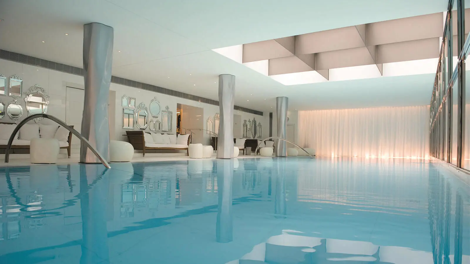 An opulent pool bathed in natural light from above.