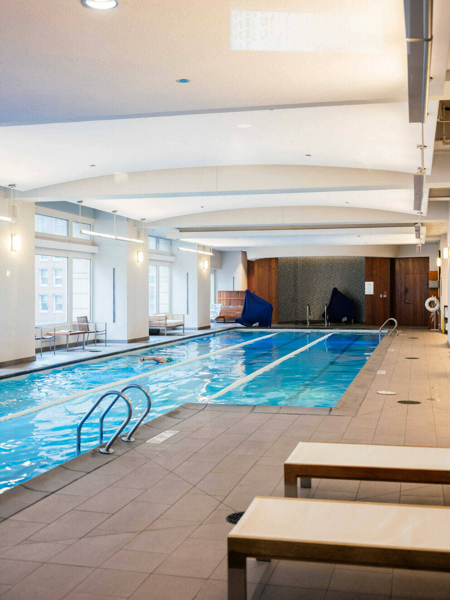 A three-lane, twenty-five-yard lap pool sits on the hotel's seventh floor and provides sweeping views of the Chicago cityscape.