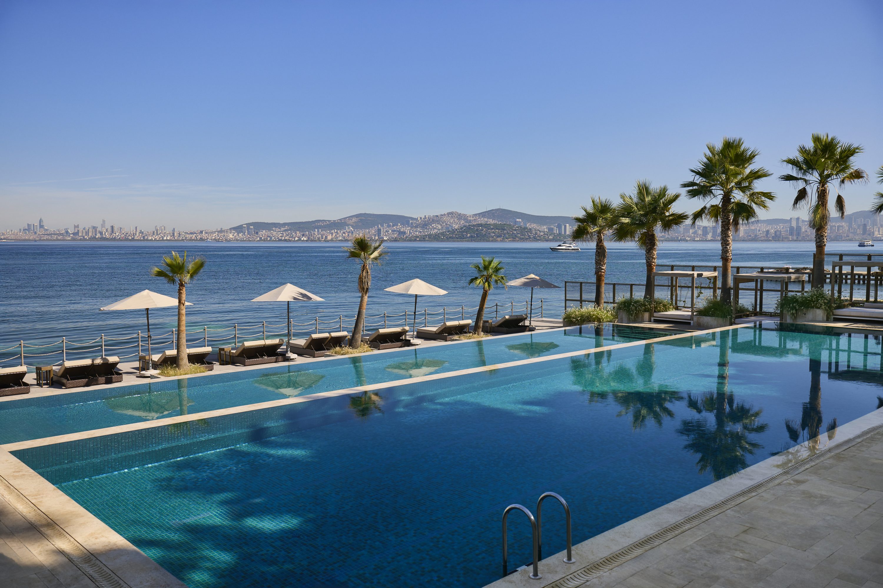 Kreb’s Bar is the social heart of the beachfront, where laid-back island energy meets Riviera-style glamour. Framed by palms and open sea views, it’s the setting for sunlit cocktails, chilled rosé and relaxed afternoons that stretch effortlessly into golden hour. Their signature drink, “Ada Ateşi” (meaning Island Fire), blends chili and lavender freshly picked from their on-site herbal garden, bringing heat and fragrance together in one unforgettable glass. As evening falls, the central fire pit becomes the gathering point, drawing guests together while the Marmara shimmers beyond.