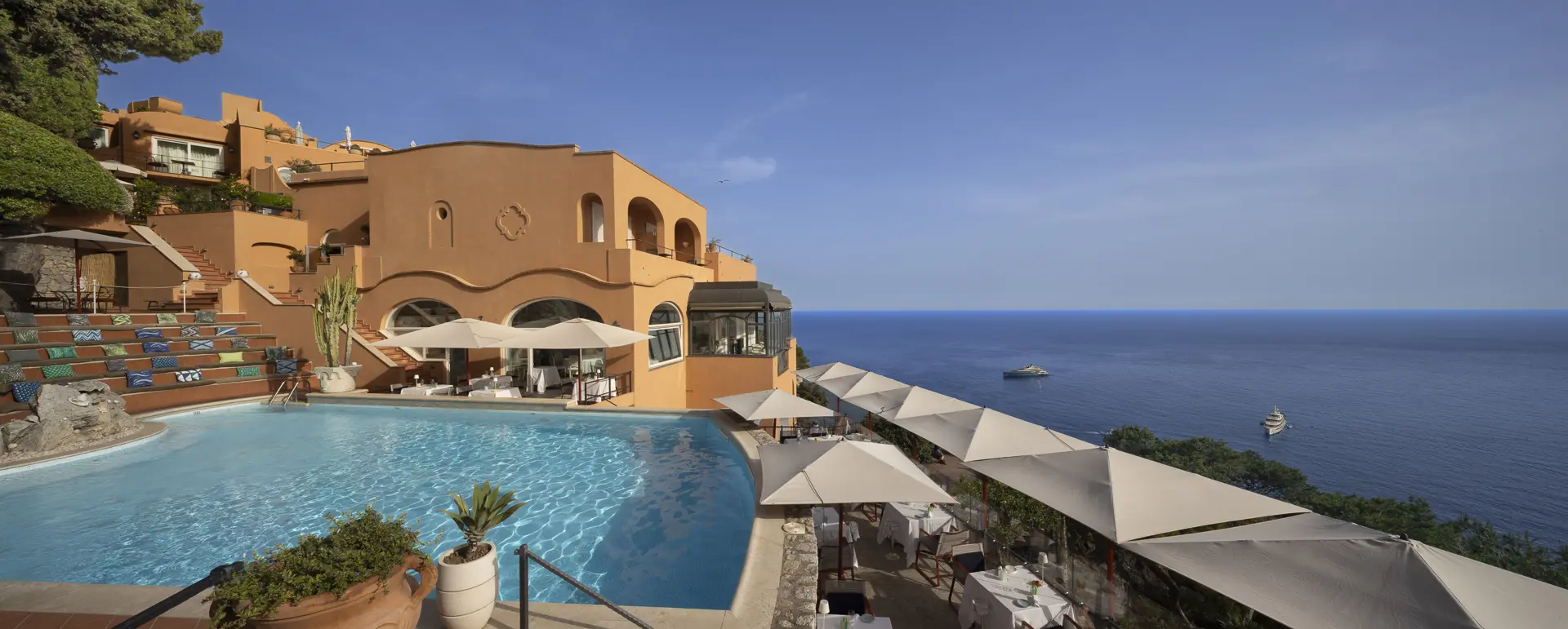 The Wellness Area at Punta Tragara is run in partnership with NARDUCCI Wellness, an Italian brand founded by Fabrizio Narducci in 2010 and specializing in hotel well-being. The treatment menu spans massages, beauty rituals, and bespoke sensory journeys, with skin care delivered through INSÌUM, a clean, vegan, biotech-led brand.