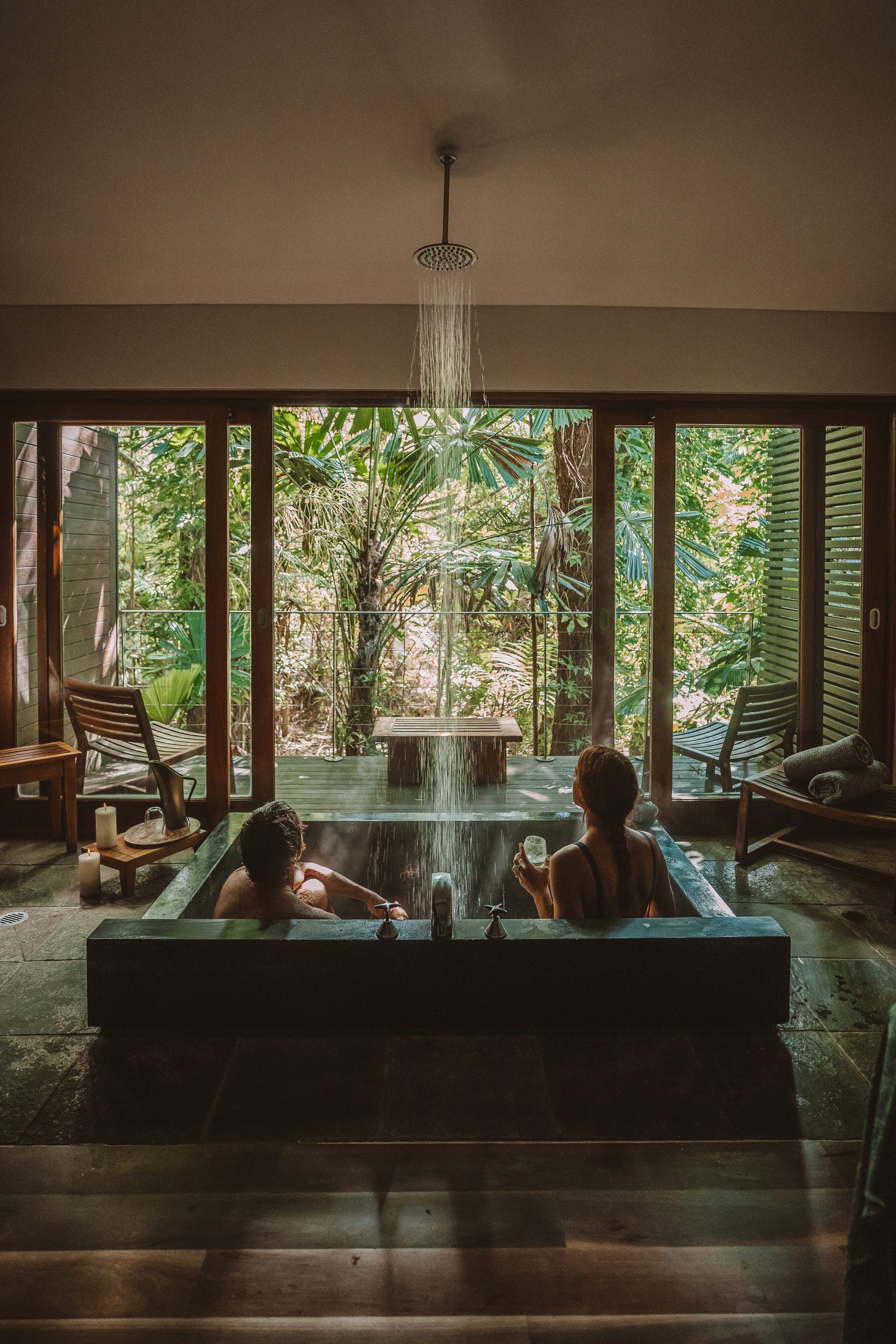 The bar at Silky Oaks Lodge offers a relaxed, social space to unwind amid the rainforest canopy, perfect for a pre-dinner aperitif or a nightcap under the stars. The bar stocks a curated selection of premium Australian wines, craft beers, and top-shelf spirits, with a signature drinks hour and snacks included each evening. Additional cocktails and spirits are available throughout the day, and for quieter moments, the in-suite bar is replenished daily.