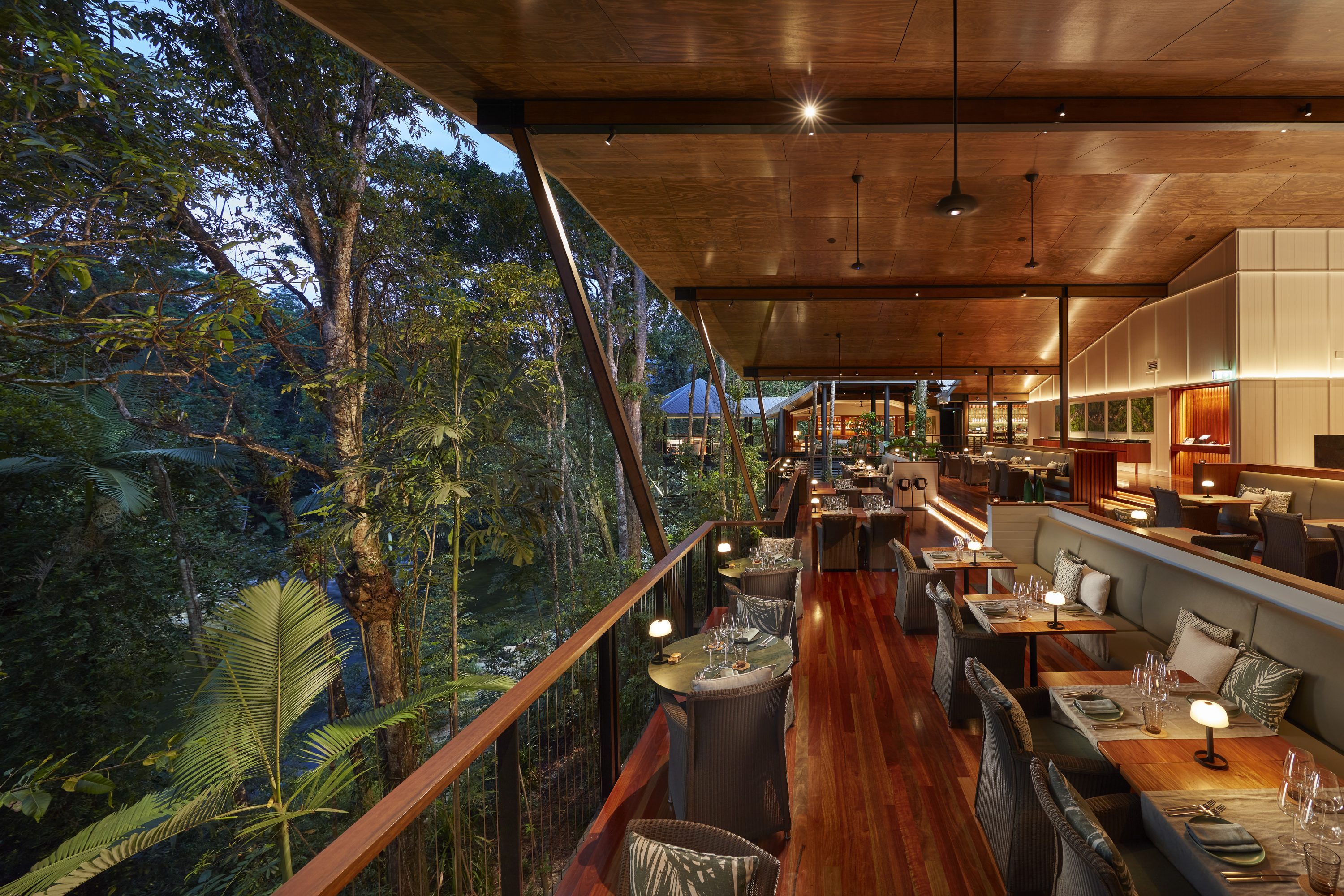 The Treehouse Restaurant at Silky Oaks Lodge is suspended high above the Mossman River, offering an open-air dining experience surrounded by the sounds of the rainforest. Each stay includes a tropical breakfast and dinner featuring a daily changing menu matched with a curated selection of premium Australian wines. The cuisine is contemporary Australian with tropical influences, celebrating the region’s finest seasonal produce sourced from local growers and the lodge’s own kitchen garden, where chefs handpick herbs and native ingredients each day. Dining at Silky Oaks is designed to connect guests with the flavors and rhythm of the Daintree – fresh, inspired, and beautifully grounded in its natural surroundings.