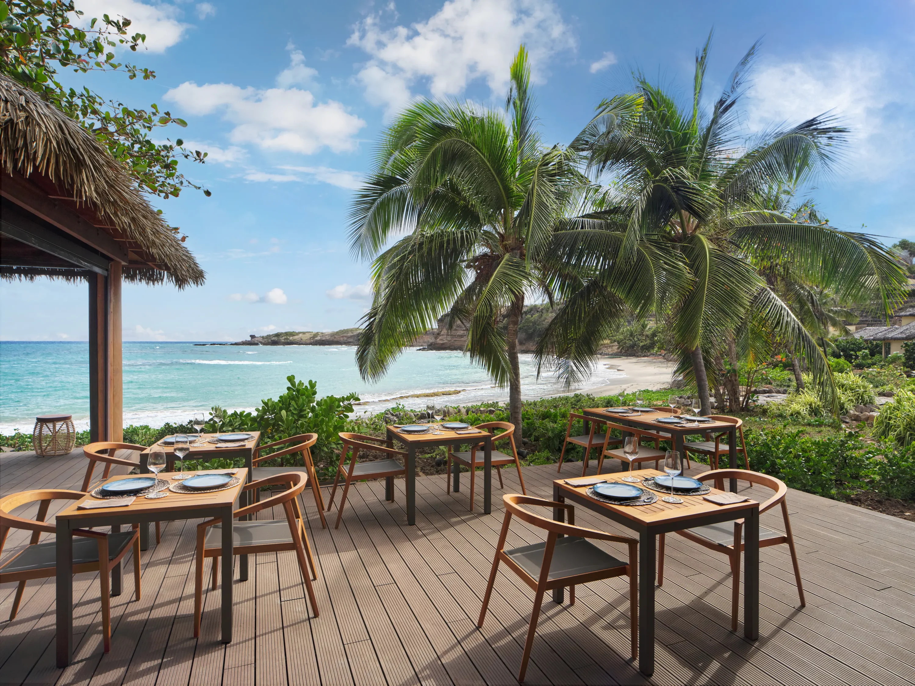 Six Senses La Sagesse offers fifty-six contemporary private pool suites and fifteen one-, two-, and four-bedroom villas, all with private pools and ocean views. Walkways lined with indigenous plants and aromatic spices wind between them, grounding the resort in its Caribbean setting. Couples gravitate toward the panoramic ocean view pool suites, families tend to settle into the two-bedroom villas, and the four-bedroom cliff retreats are a natural fit for multi-generational groups or a girls' trip.