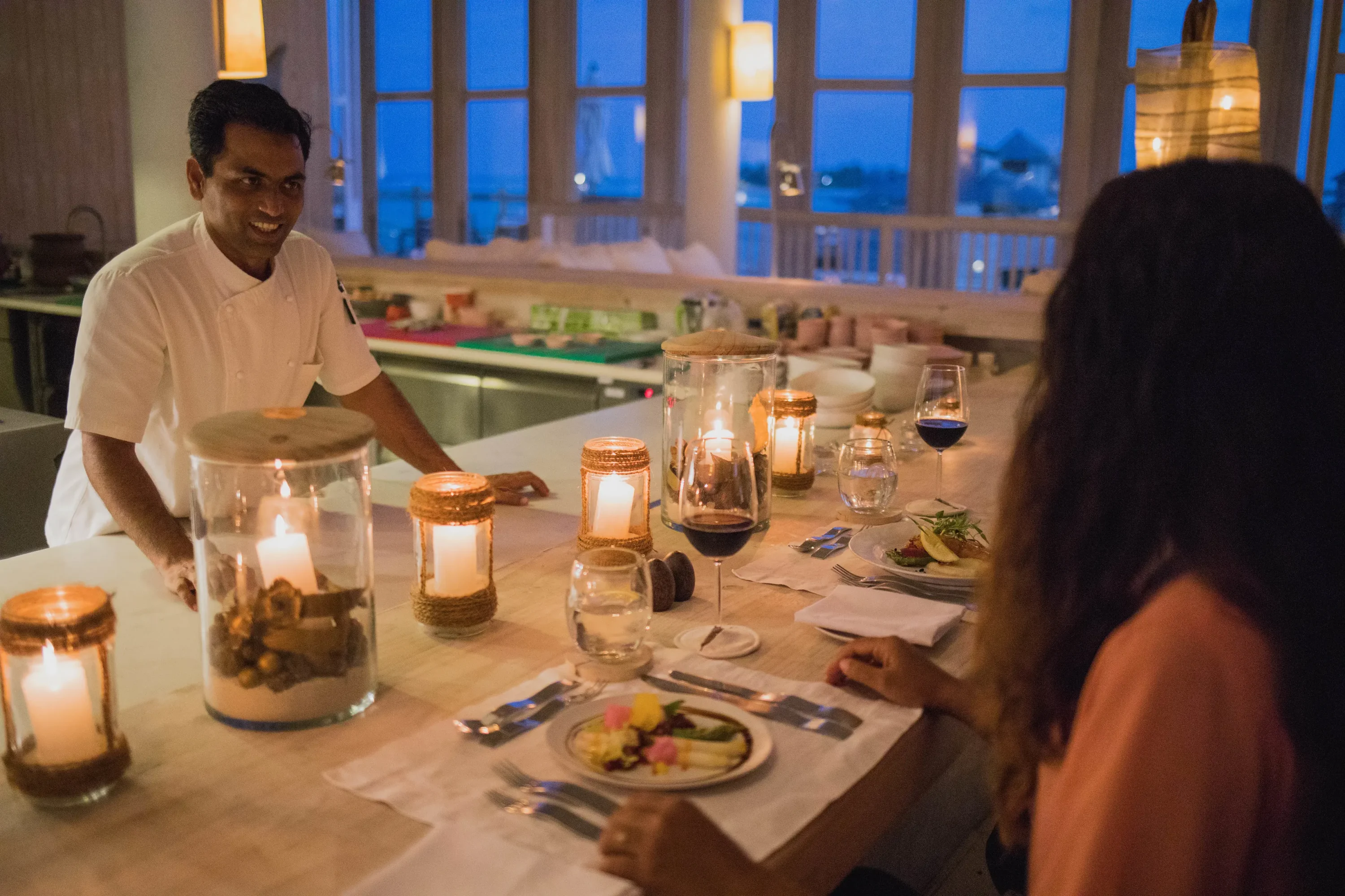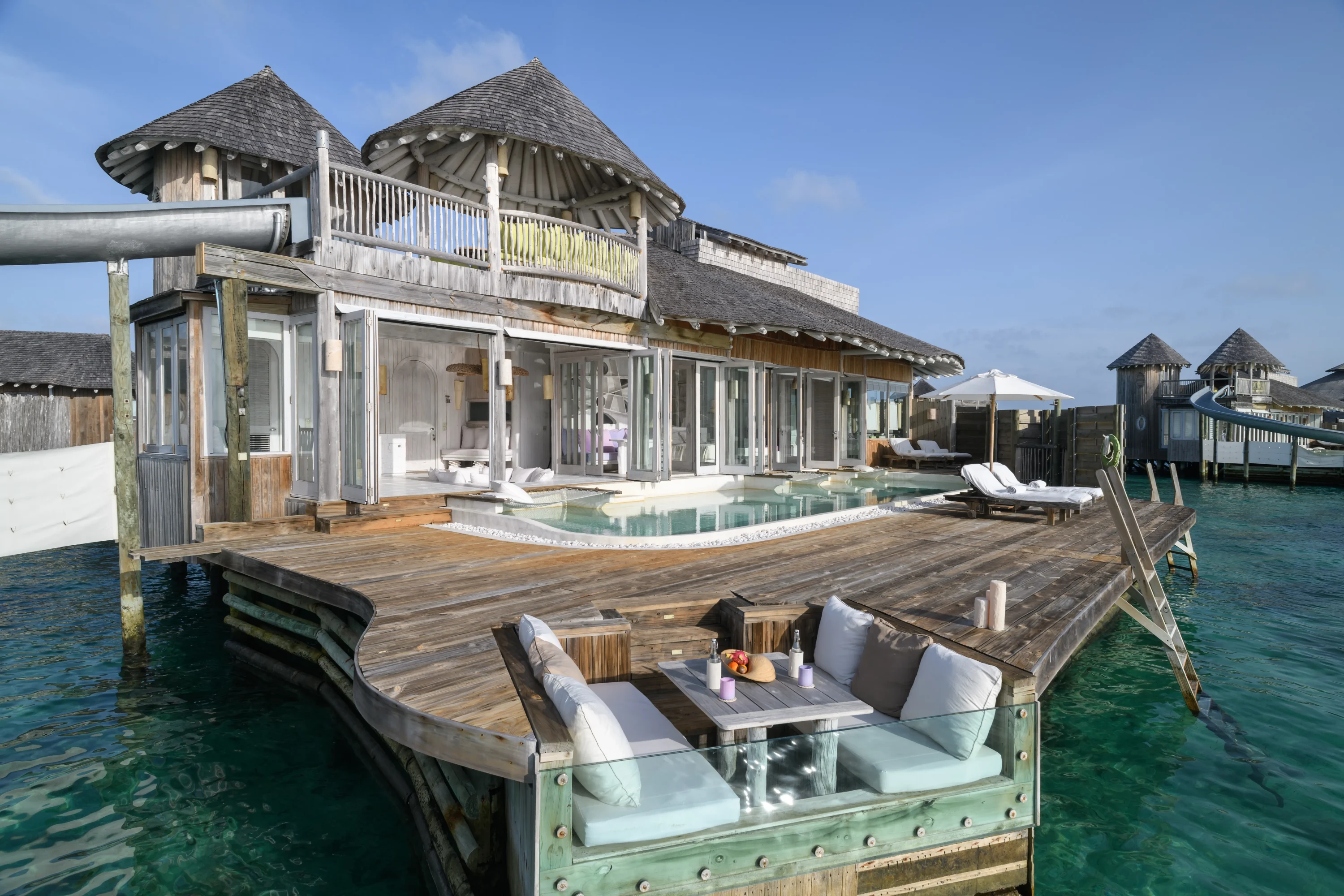 Soneva Soul spans two distinct settings: the Overwater Spa at The Gathering and the three-level Island Spa complex, connected by raised walkways winding through the trees. Treatment rooms, consultation suites, and integrative medicine rooms sit alongside a yoga pavilion and meditation platform perched high above the tree line, with 360-degree views across the lagoon. Experienced therapists, medical experts, and wellness specialists work across both spaces, blending ancient healing traditions with cutting-edge therapies to build programs around long-term wellness goals rather than a single treatment.