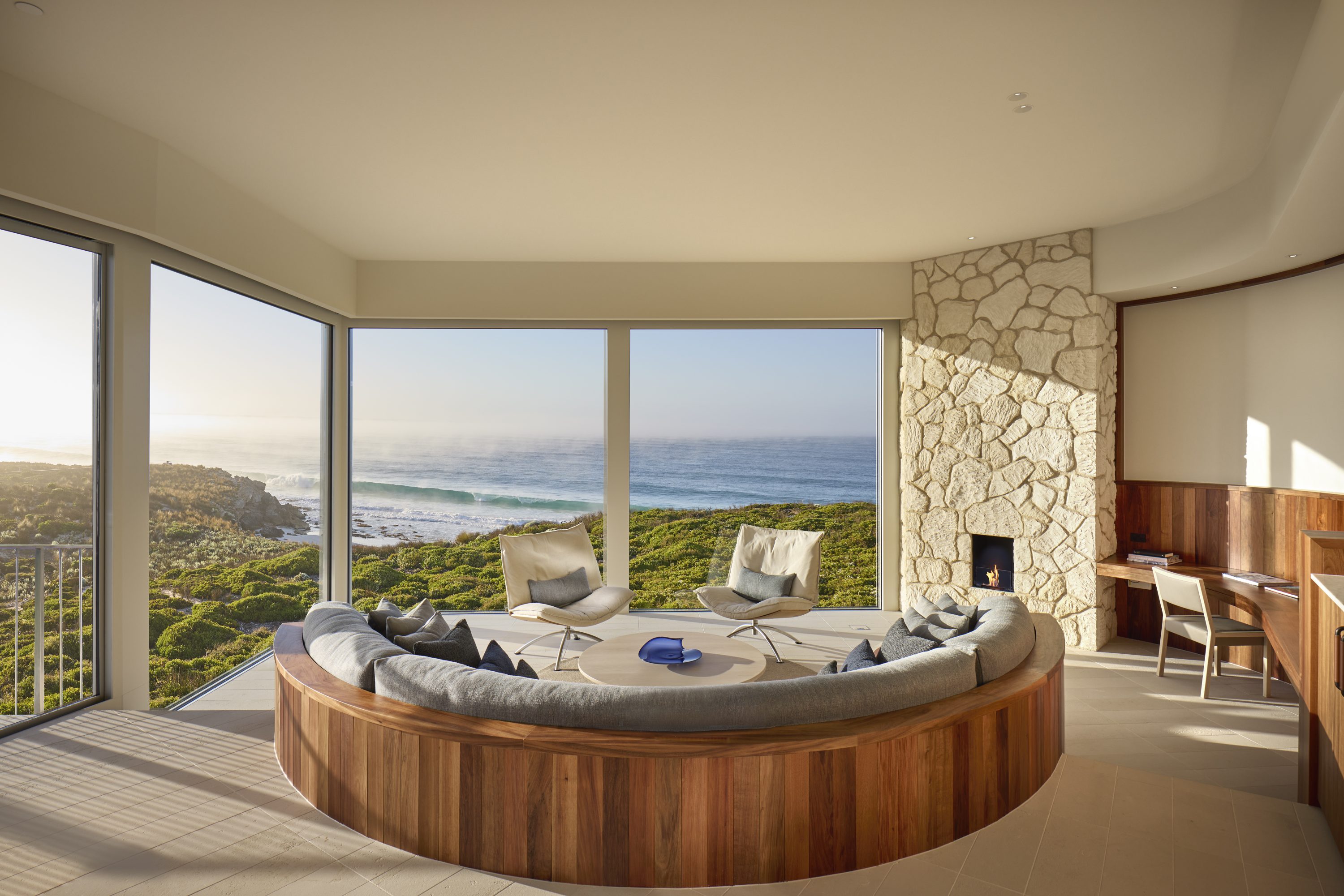 At the heart of the lodge, adjoining the Great Room, guests will find a heated infinity-edge pool that seamlessly merges into the panoramic horizon. The pool terrace offers a tranquil spot to unwind, soak in the surrounding coastal scenery, and listen to the thundering sounds of the Southern Ocean below.