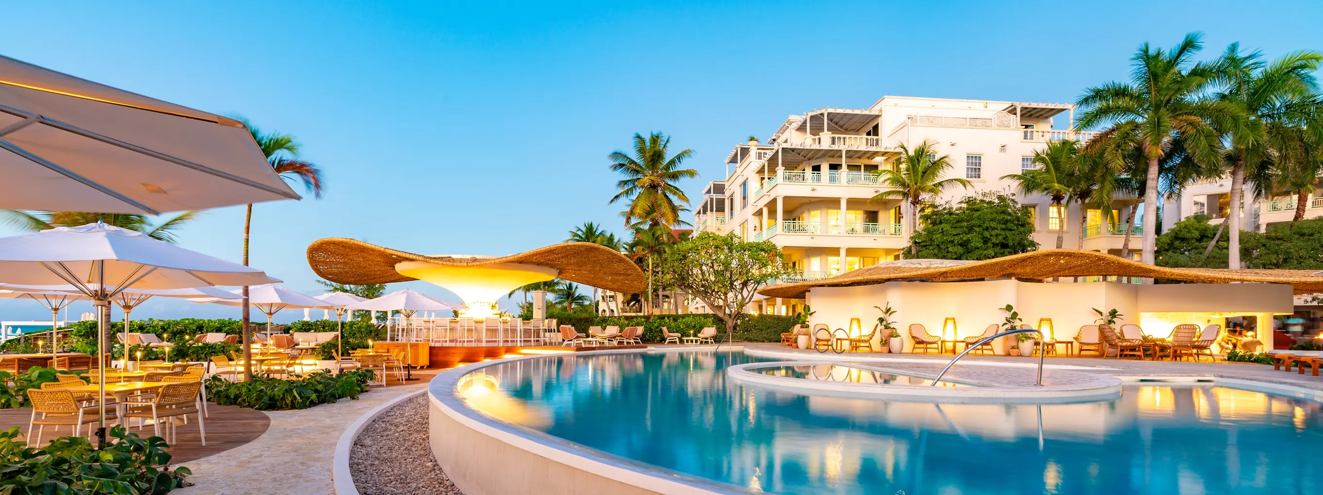 The Palms sits directly on Grace Bay Beach in Turks and Caicos Islands, consistently ranked among the most beautiful white-sand beaches in the world. The refined seventy-two suite resort is built around a large spa and infinity pool, with stylishly appointed accommodations designed to feel as relaxed as the setting demands.