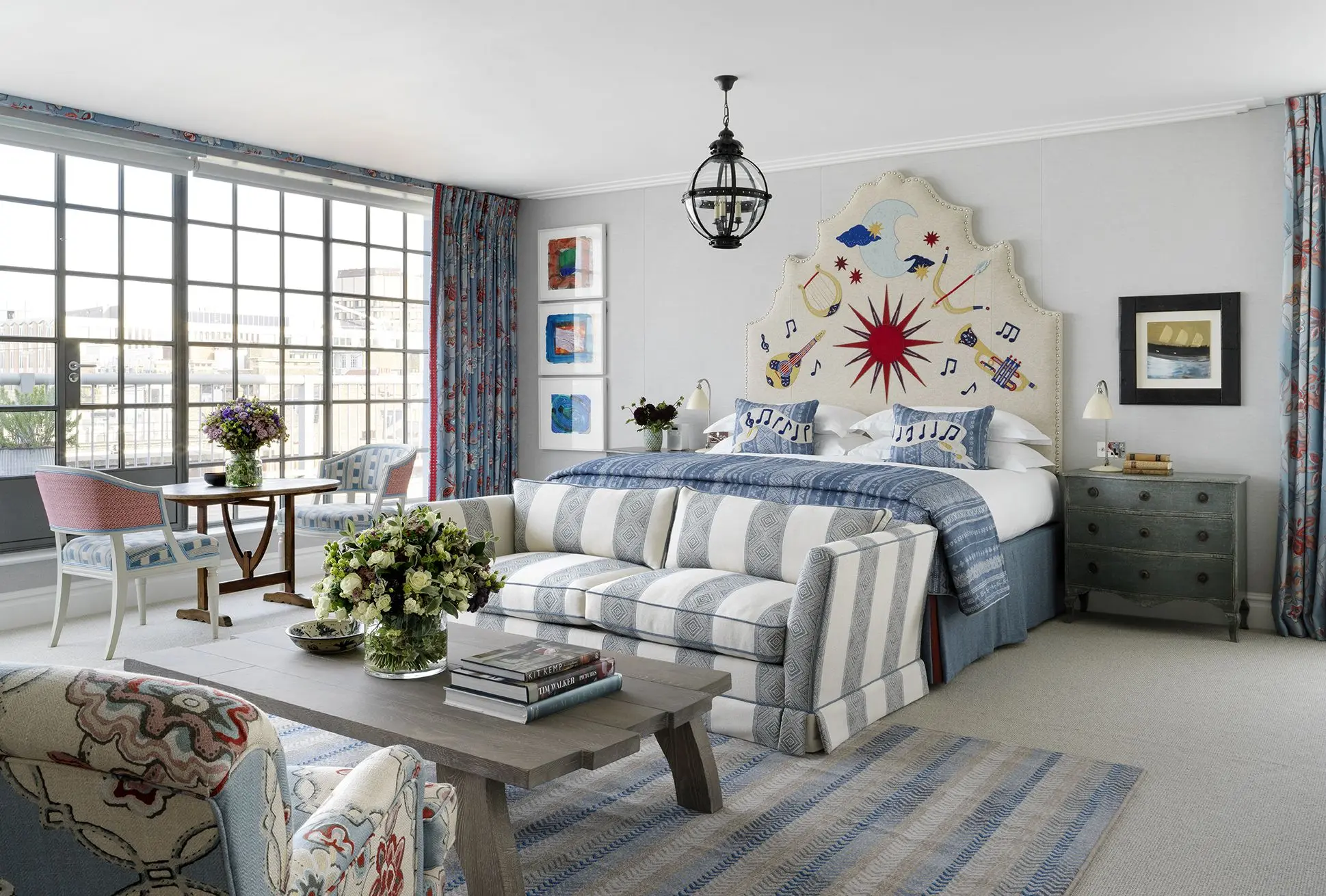 The rooms and suites are all individually designed by Founder and Design Director Kit Kemp using bold colors and fabrics with a playful design. Each features a unique headboard in beautiful fabrics. Rooms are continually being redesigned with new schemes, keeping our hotel rooms fresh and on trend with Kit's new collaborations.