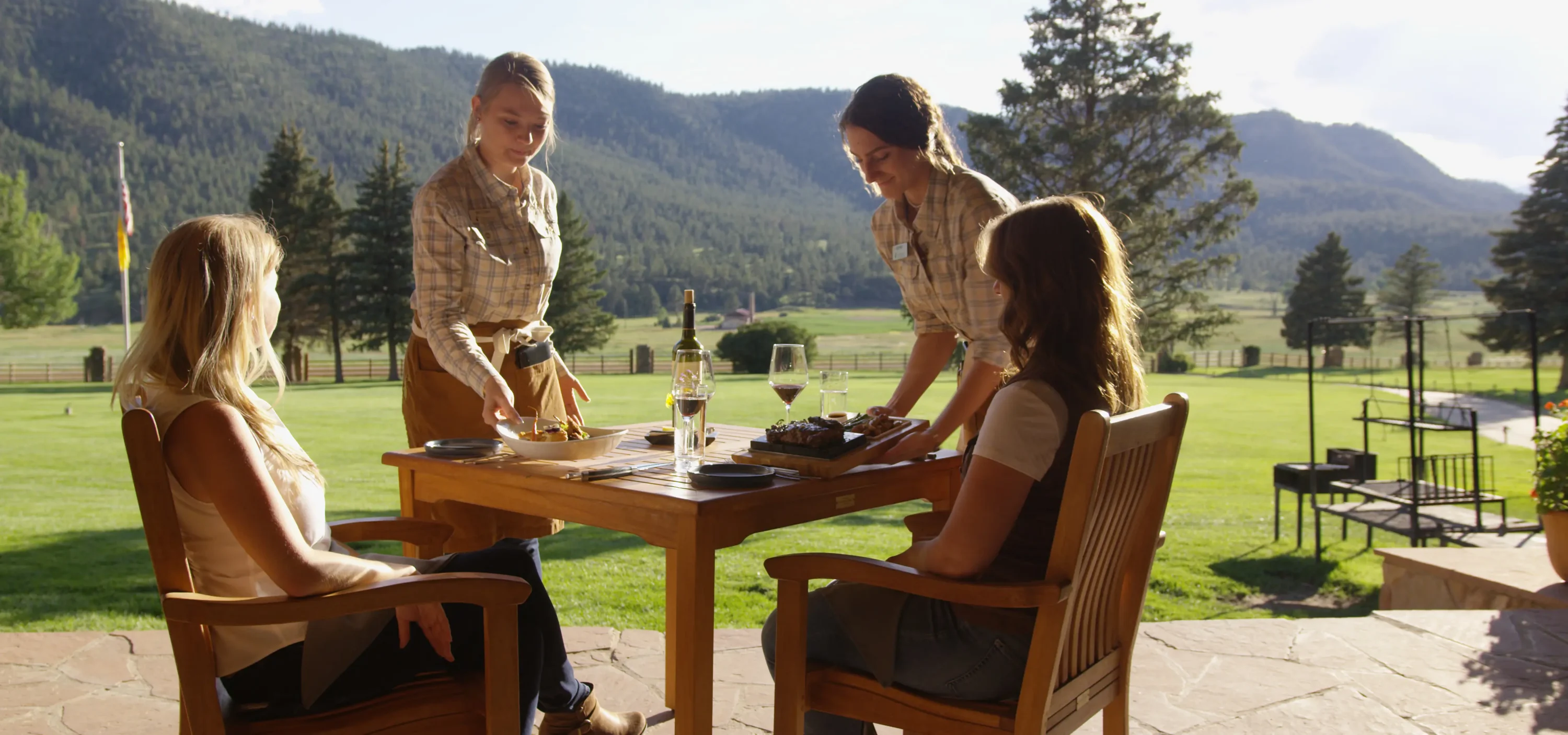 You'll receive three gourmet meals each day, included with your stay. The Dining Room at the Main Lodge offers regionally sustainable "of the land" fare expertly prepared by Executive Chef Giovanni Lanzante, featuring favorites such as bison, fresh catch, and greenhouse grown salads. A stay at Vermejo wouldn't be complete without enjoying a few culinary adventures. Choose from alfresco fare at the water's edge, old-fashioned cookouts in historic locations, cooking classes, wine tastings, and more! Sip craft cocktails, local beers, and select wines from the property's extensive wine cellar. Vermejo's Lounge features an extensive wine list, highly sought bourbons, and an array of other fine spirits. The Vermejo Old Fashioned is a standout–enjoy it while taking in the views from the Veranda.