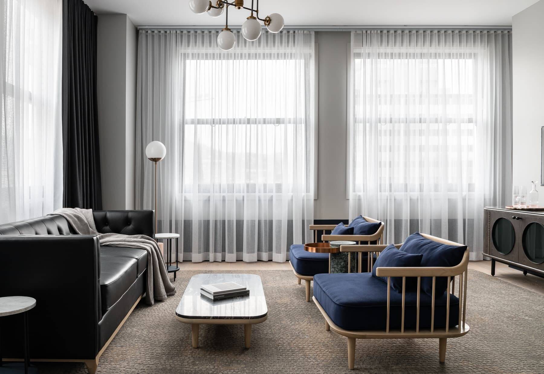 Guests have complimentary access to the fitness center featuring equipment such as a traverse rock-climbing wall, treadmills, elliptical, recumbent bikes and Peloton. One of the most impressive elements of the gym is MIRROR, an interactive workout mirror with all-in-one responsive display comprised of an LCD panel, stereo speakers, camera (with lens cap for privacy), microphone and one-way mirror to create a fully immersive fitness experience. Woodlark is the first in the nation to introduce MIRROR within a hotel space.