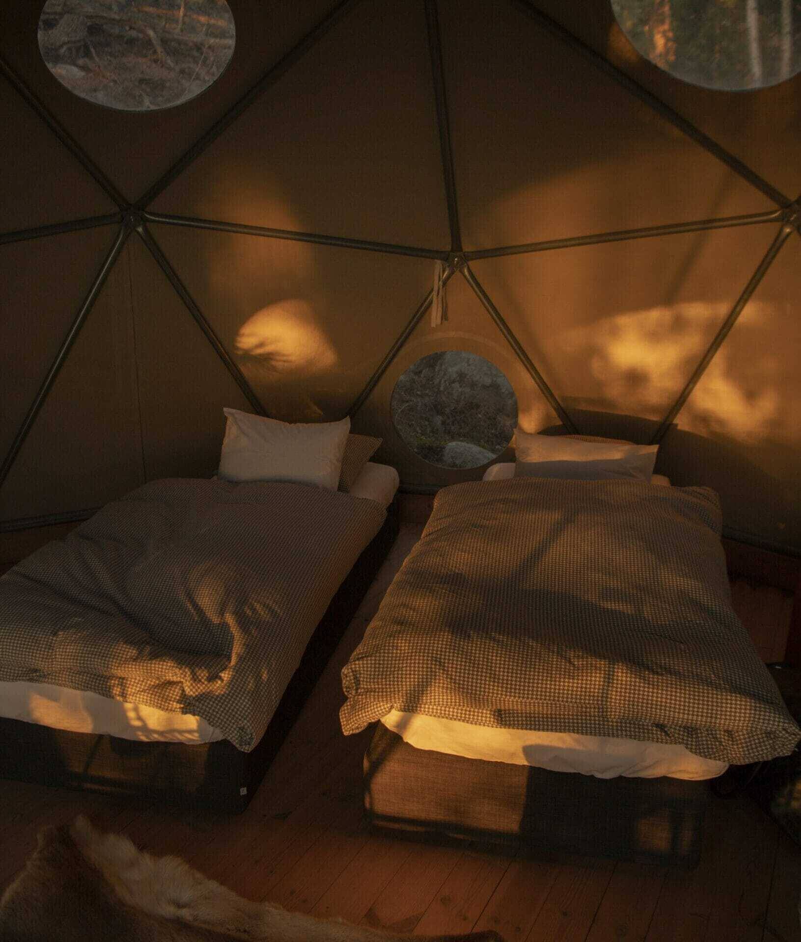 Remote island dwelling at its finest. This experience offers seven high-end tented lodges for anyone looking to explore Sweden’s great outdoors with the comforts of home. Each of the lodges, including their tented event space, can be customized to feature twin beds, wood-fired stoves, and modern Scandinavian interiors. This is an especially magical wellness experience with their woodfired hot tub on the water.