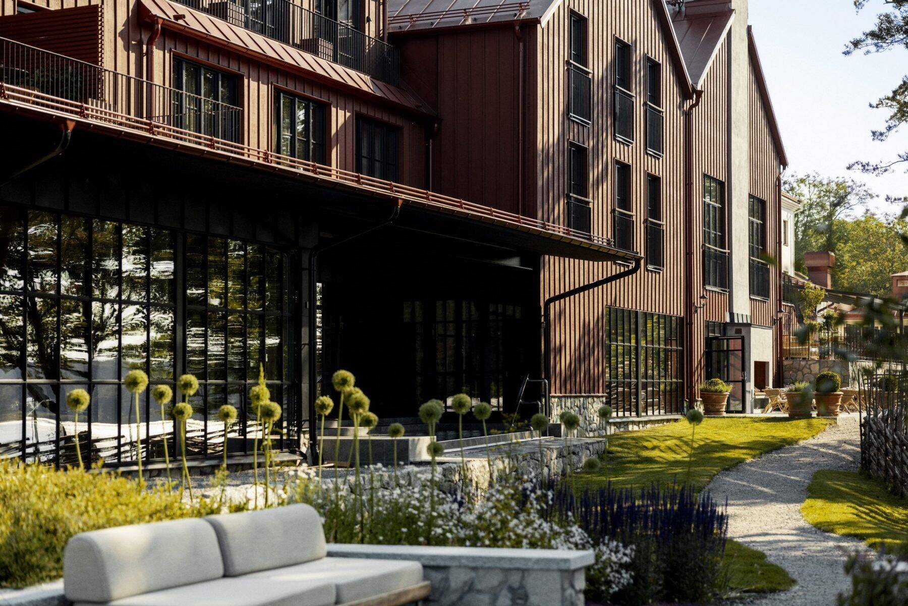 The property is proudly owned by two sisters who converted this former waterside mansion – previously owned by a captain of the royal navy – into a charming, intimate hotel. It also prides itself on a “relaxed wellness” experience crafted in collaboration with Swedish beauty brand Kerstin Florian. After checking in, you can opt to enjoy a variety of massage treatments as well as take a dip in one of four pools. The outdoor springs are a true delight, especially if visiting in the fall for front-row seats to the leaves’ vibrant display of oranges and yellows over the water.